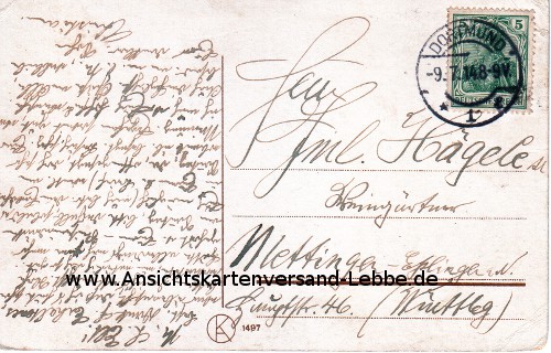 GELAUFEN 1914 nach Mettingen - Esslingen a. N. (Württbg) Hauptstr. 46, Hägele (Kleingärtner ?)