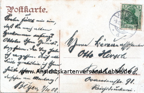 GELAUFEN 1908 nach Berlin SW.68. Oranienstr. 91, Reichsdruckerei, Herrn Büreauassistenten Otto Hirsch