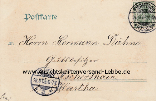 Original-Ansichtskarte, Lithographie, GELAUFEN 1905 nach Aschershain (Hartha), Herrn Hermann Dähne, Gutsbesitzer