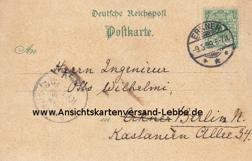 ORIGINAL-LITHOGRAPHIE, Gelaufen 1899 nach Berlin N., Kastanien Allee 34. Herrn Ingenieur Otto Wilhelmi