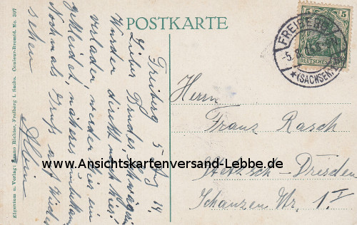 gelaufen 1914 nach Dresden Stetzsch, Schanzen Str. 1. I (1926 in Buhnenstraße umbenannt), Herrn Franz Rasch