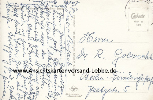 gelaufen nach Berlin Friedrichshagen, Peetzstr. 5, Herrn Dr. Richard Gobrecht