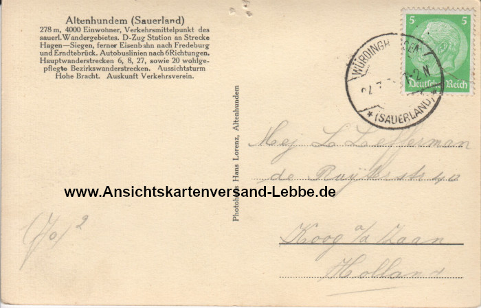 ALTER/ZEIT/STEMPEL: WÜRDINGHAUSEN (SAUERLAND) - geschätzt bis 1935