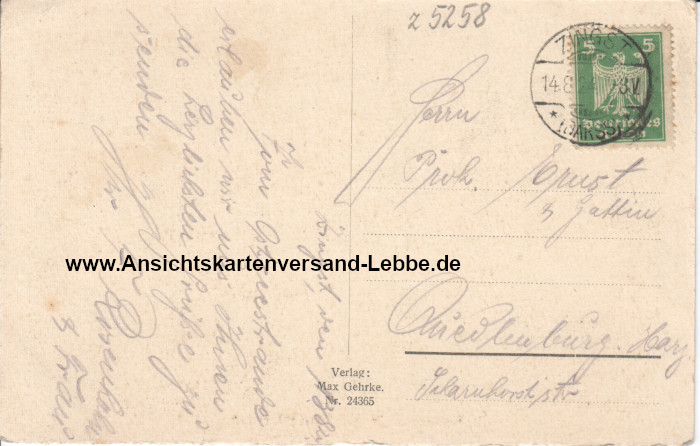 Gelaufen 1924 nach Quedlinburg Harz, Scharnhorststr., Herrn Prokurist Ernst & Gattin