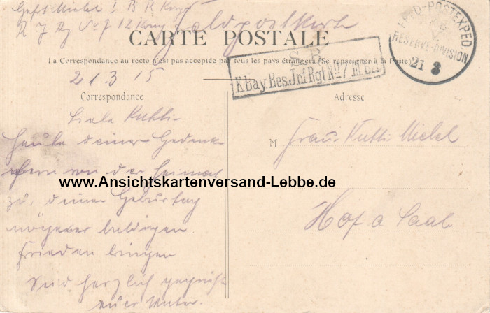 ANKUNFTSTEMPEL/ANDERE STEMPEL: S. B. K.Bay.Res.Inf.Rgt.No7 III.