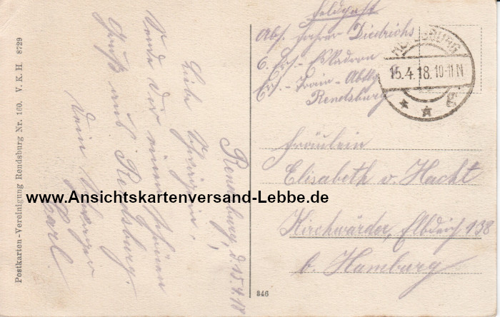 Rendsburg - Holstenstraße 5 Reichsbank Architekt Julius Habicht 1918 Feldpost Elisabeth von Hacht Kirchwärder Hamburg Bergedorf Elbdeich