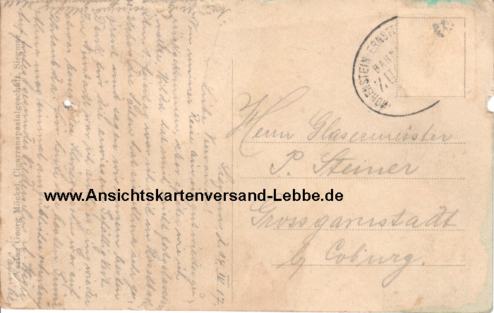 Gelaufen 1917 als BAHNPOST nach Großgarnstadt b. Coburg, Herrn Glasermeister P. Steiner