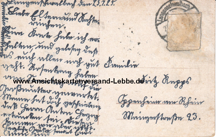 Gelaufen 1925 nach Oppenheim am Rhein, Mainzerstraße 23. Familie Fritz Kapps (?)